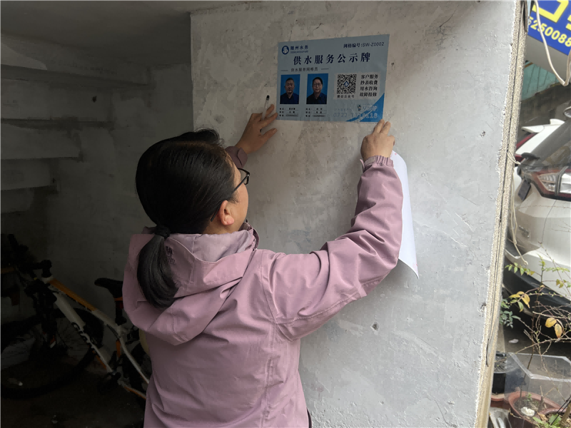 為了持續(xù)提升供水服務質量,營造更加優(yōu)質的營商環(huán)境,隨州市水務集團城市供水公司精心制作了5200張藍色調的供水服務公示牌,并將它們張貼于居民點的顯眼位置,實現(xiàn)了便民服務的全面覆蓋。這一舉措確保了用戶的疑問能夠隨時得到及時解答,真正做到了“小事不出網(wǎng)格,大事快速聯(lián)動”,極大地節(jié)省了用戶的時間,提高了辦事效率,讓用戶切實感受到了貼心與便捷。